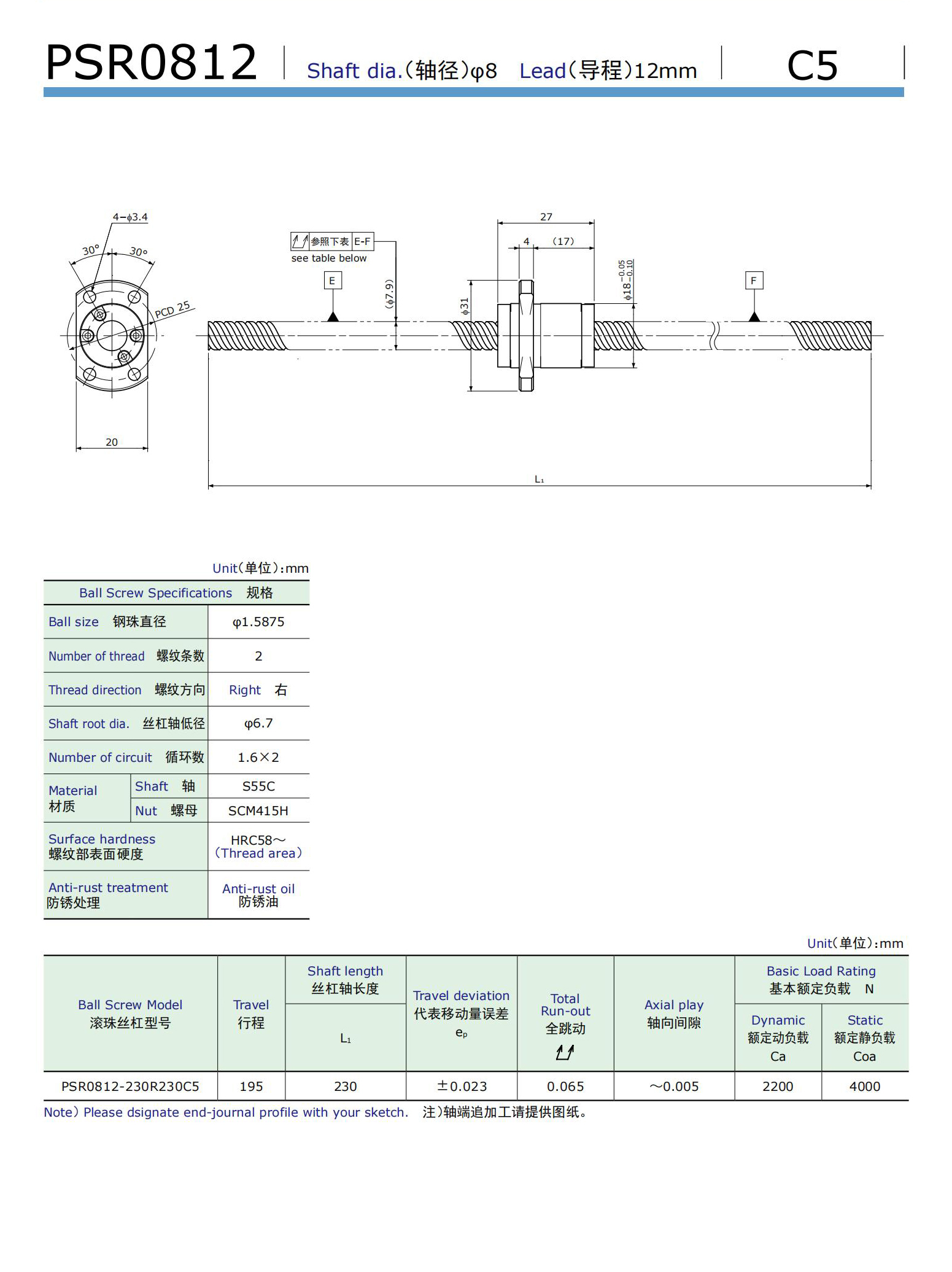 额定动负载(N):2200